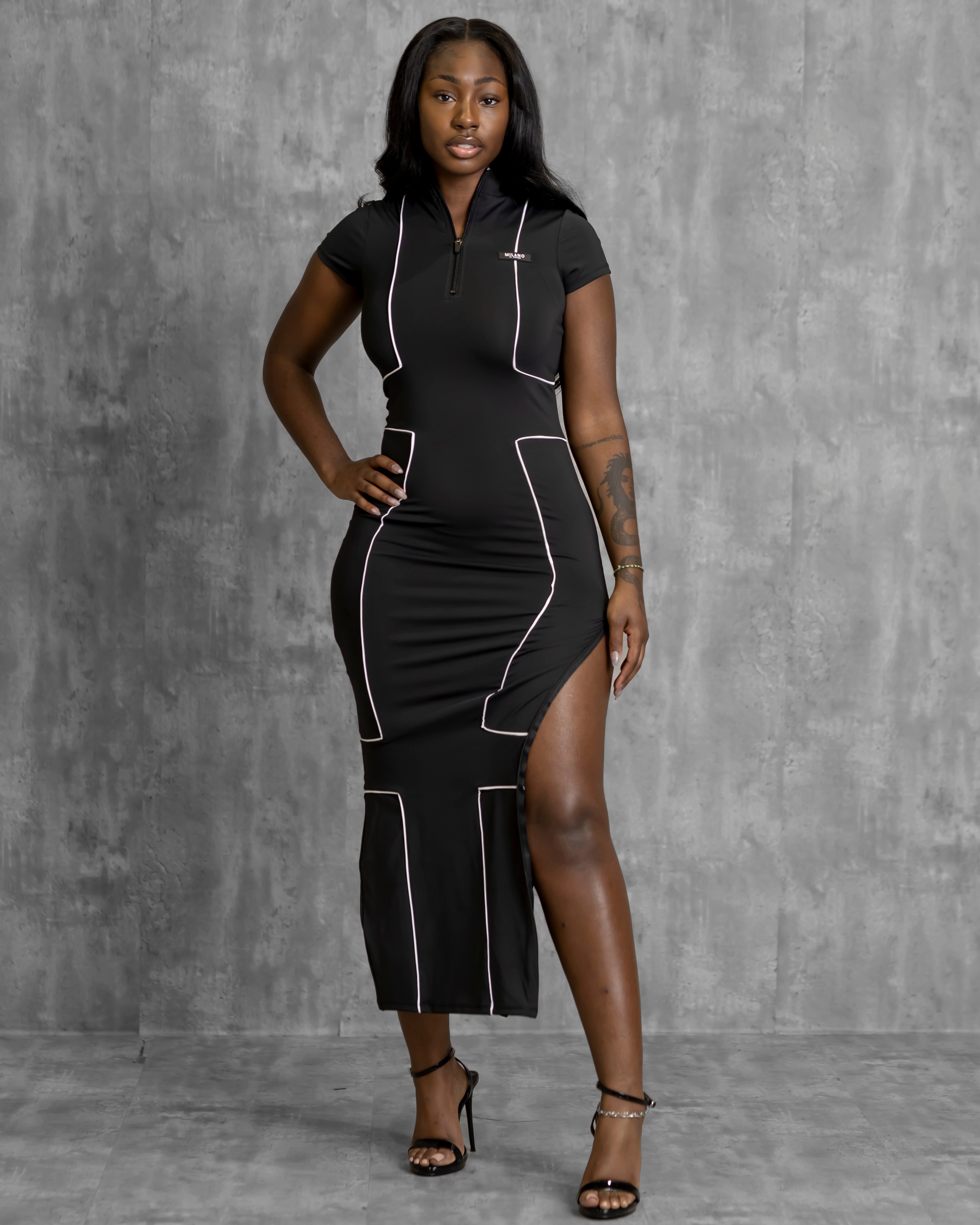 Where ambition meets elegance, Introducing the new Megan Dress! Your go to essential for a sleek, effortless look that keeps up with your journey. Crafted from our high performance fabric blend of 78% polyester and 22% elastane, this dress sculpts, stretches, and moves with you, delivering the perfect balance of structure and flexibility.
