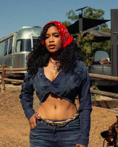 The Martian Crop Jacket returns with a bold new edge. Made from the same premium Italian denim as our Capo Jeans, this piece is designed in Los Angeles and finished with a raw-edge hem for an effortless, lived-in look. A signature leather Milano Di Rouge embossed patch sits at the back collar, marking it with authenticity. Wear it as a statement on its own or pair it with the Capo Italian Denim Jeans for a full set.