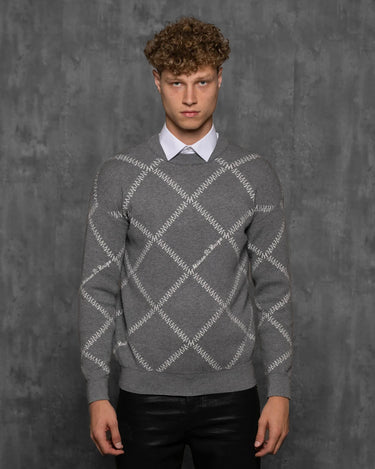 Sweater weather just got better! Add the Jonis Sweater to your Fall/Winter collection and you'll make a statement for sure. Perfect for gifting ladies, treat your man to this comfy wool sweater. This Sweater is a crew neck and has a slim fit to it available in both black and grey. Created with comfort in mind. The Jonis Sweater has one of our new jacquard prints running through it with the Milano Di Rouge Signature signed across the center.